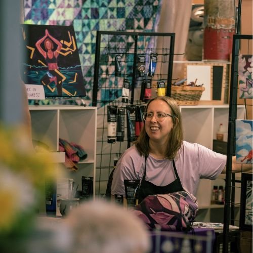 Monica Brinkman is a Hamilton-based artist who paints the part of her story that came after “I’m not doing this anymore.” Her textured, symbolic paintings reflect the moments she thought she carried alone: the shame-filled quiet undoing, the very slow returning, and the unsteady rise back into who she really is…